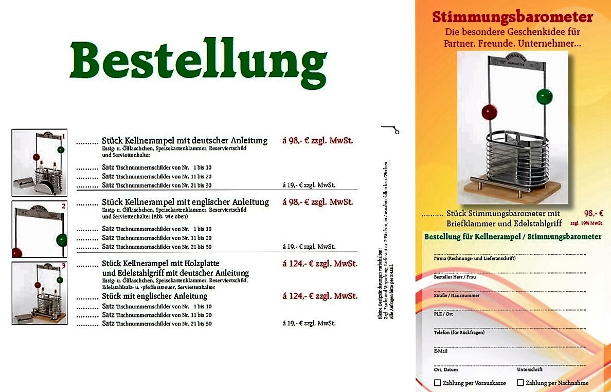 Bitte denn Bestellschein per Post, FAX oder E-Mail zusenden.